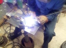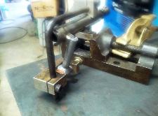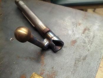| The Mauser bolt was replaced with a homemade knurled handle. These photos illustrate the angle set, welding, and final shape (note - the last picture was taken prior to weld filing and polishing) |